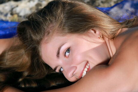 Lovely teen Vivian takes off her bikini for nude poses on a bluff