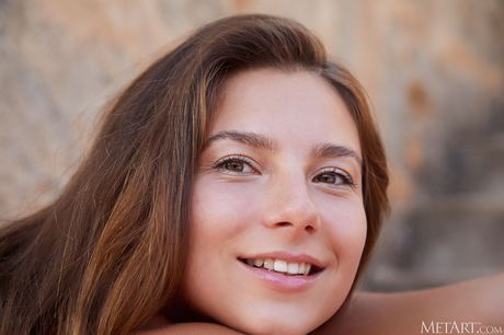 Magnetic teen Belka gets naked on the steps leading to a vacation villa