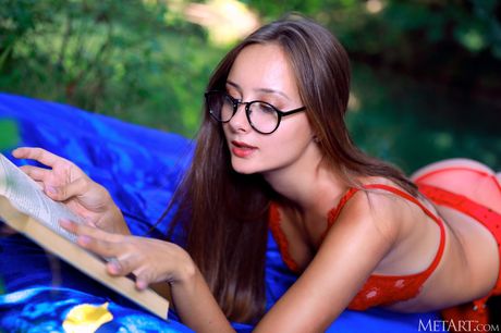 Magnetic teen Rosalina removes her glasses and lingerie to pose nude in stockings