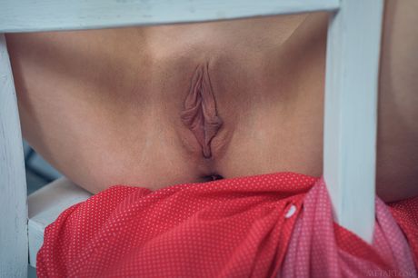 Magnetic teen Ryana removes her red dress and panties to pose nude