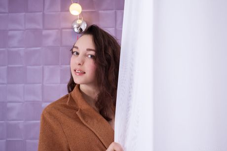 Magnetic teen Solange removes her robe and lingerie to pose nude in her room