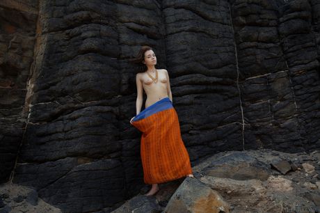 Nice teen Keira Blue goes nude on a rock in a tidal pool