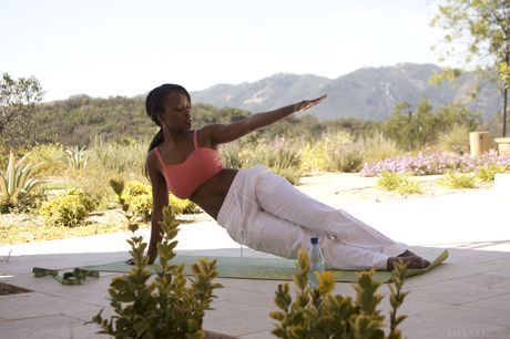 Perfect teen Jezabel Vessir uncovers her big tits while doing yoga in the nude