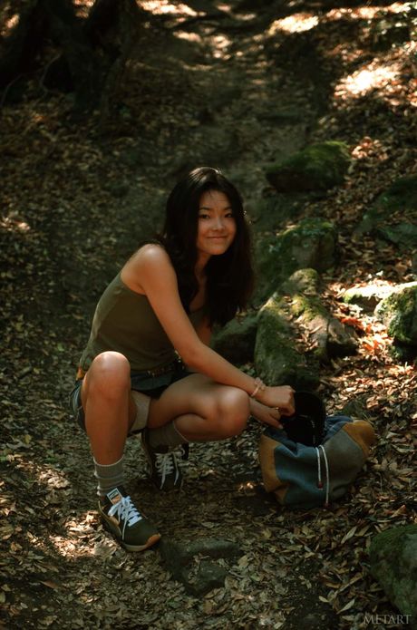 Perfect teen Keiko A removes her bikini and socks to pose nude