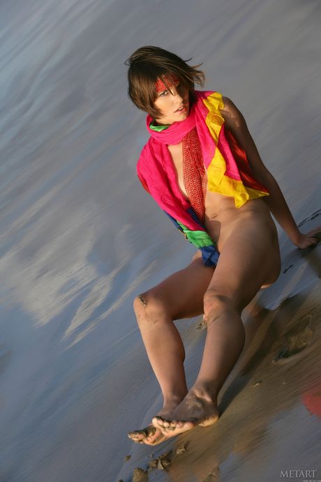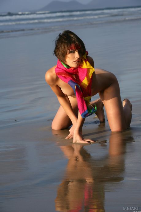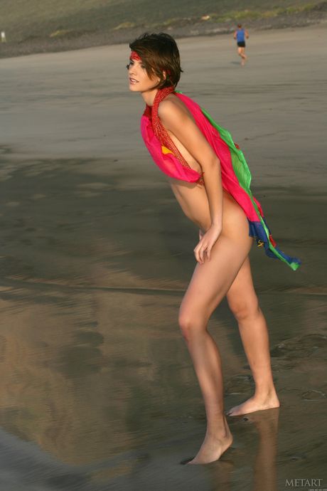 Petite teen Demi A shows her small tits & exposes herself on a beach