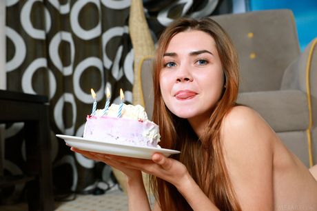 Petite teen Georgia Sampaio removes a negligee to pose nude in her bedroom