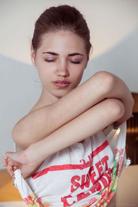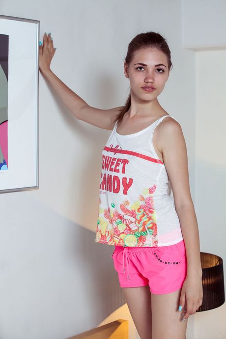 Petite teen Jasmina removes her clothes and toys her pussy in the nude