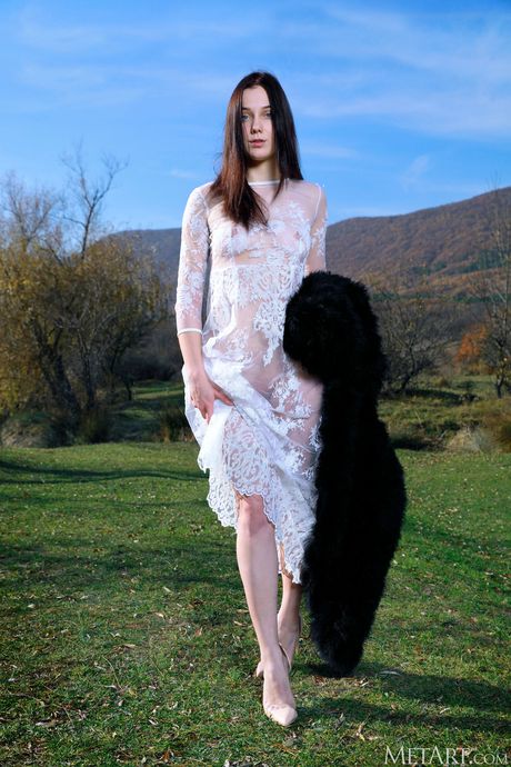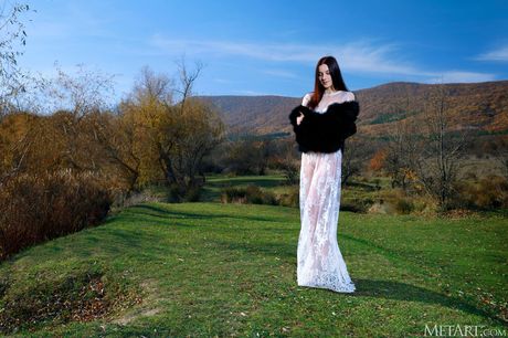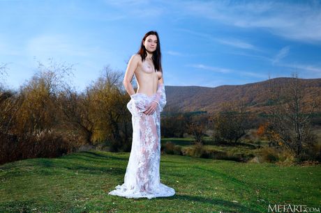 Petite teen Polly Pure goes nude on a blanket in a field by a tree