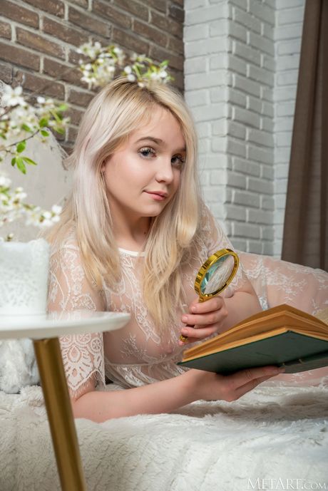 Petite teen Riya removes a white lace dress and panties to get bare naked