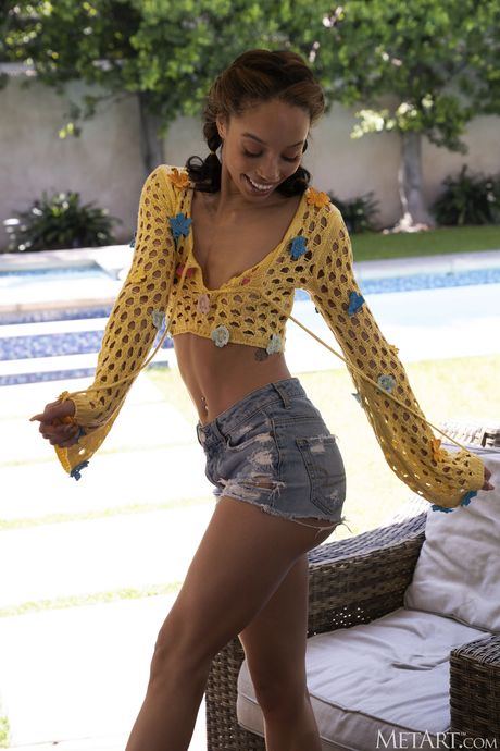 Pigtailed teen Alexia Tae strips down in the backyard & highlights her big tits