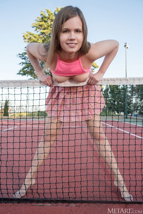 Precious teen Sanny gets naked on a tennis court before playing a match