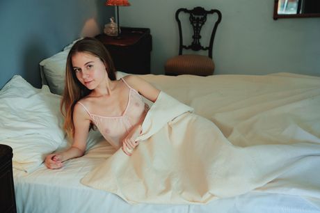 Precious teen Shayla removes her lingerie to model in the nude