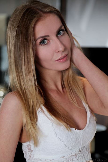Pretty teen Bjorg Larson removes her bra and panties to pose nude in her room