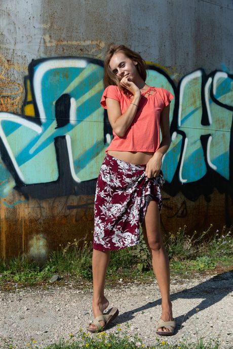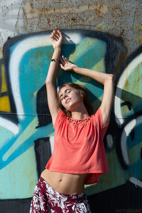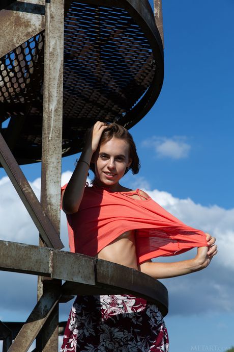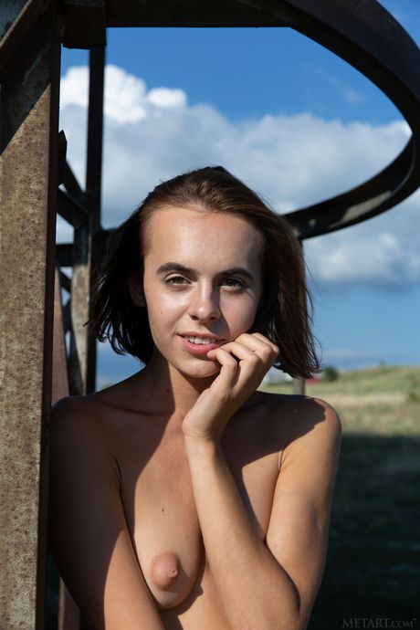 Pretty teen Gracie shows her big tits and poses naked in a secluded spot