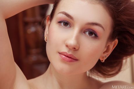Pretty teen Isabele removes her lingerie and panties to get bare naked