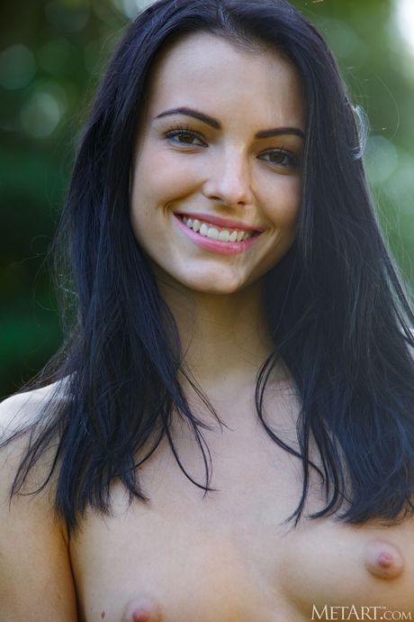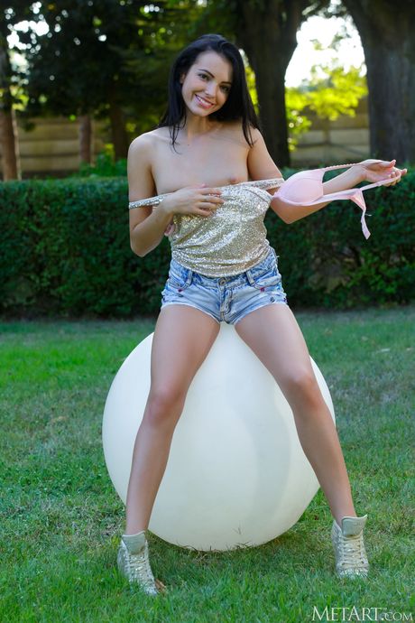 Pretty teen Sapphira A gets naked on a lawn mower in a garden
