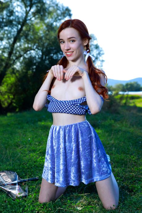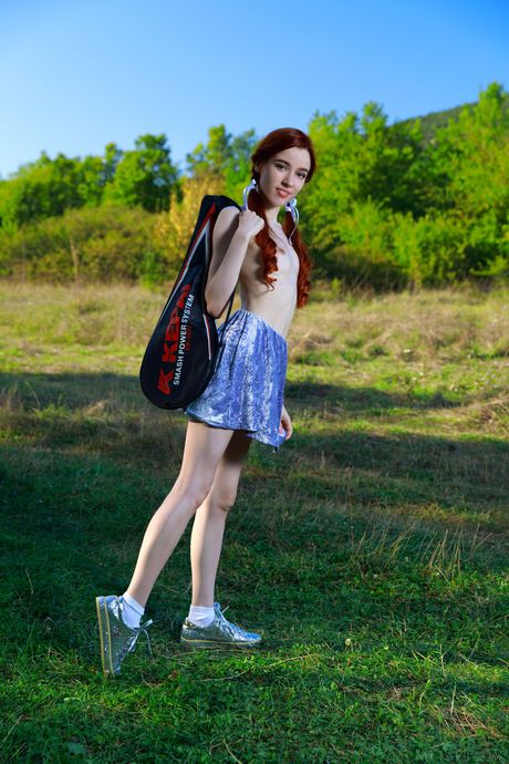 Pure teen Sherice gets naked on a patio while playing badminton