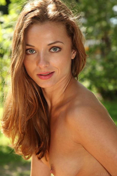 Redheaded teen Alyssa A gets naked on a bench in the park