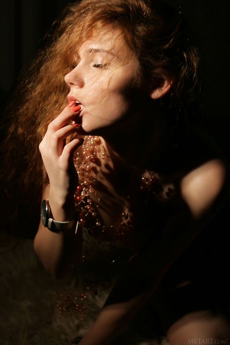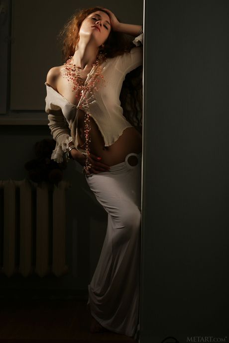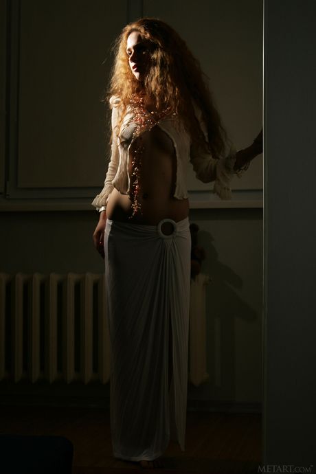 Redheaded teen Ira J with big tits and pierced nipples strips naked