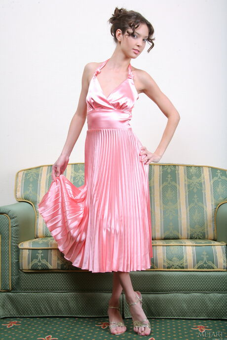 Russian beautiful Melany A strips off her dress and poses naked in a solo