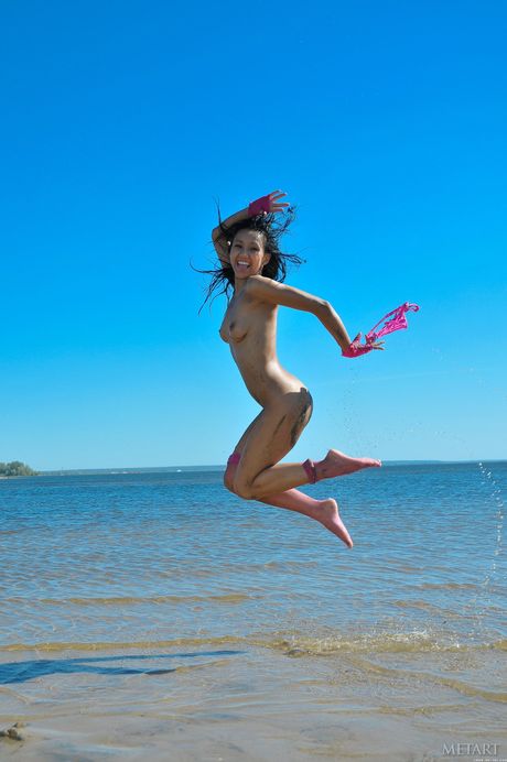 Russian cutie Diva A gets naked in a pool after removing her bikini