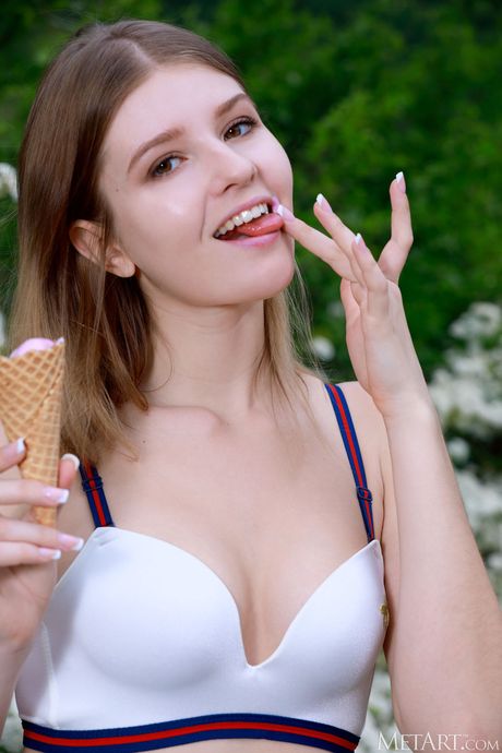 Russian fair Libby goes nude while enjoying ice cream in a field
