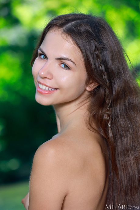 Russian lady Sirena Milano strips down while on a picnic blanket by a river