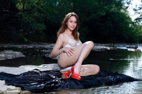 Russian model Annamalia bares it all on a blanket by a river