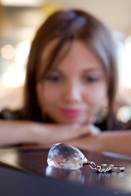 Russian model Michaela A reveals her big tits and shaved pussy in the nude