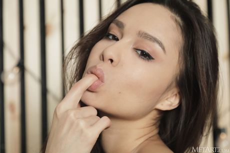 Russian venus Astrid Herrara removes a bodysuit to pose nude on her bed