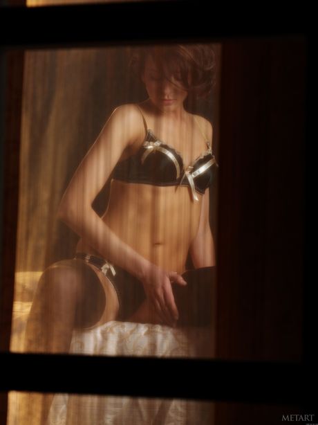 Russian venus Calla A removes her lingerie and stockings to pose nude
