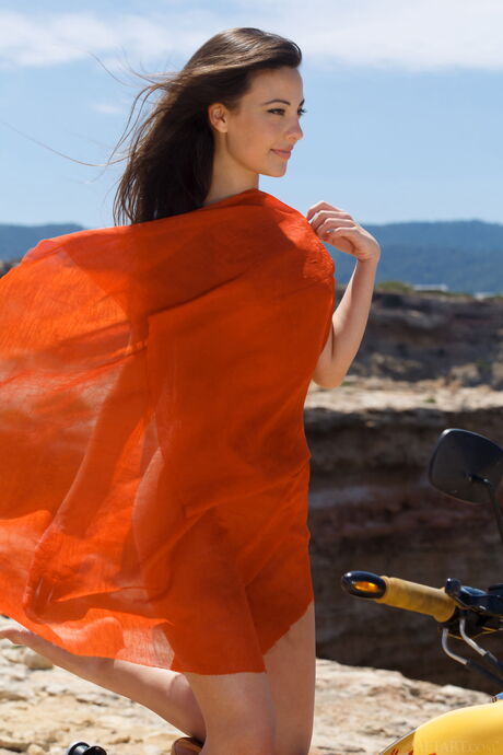 Sexy babe Lorena B strips off her clothes and poses nude on a motorcycle