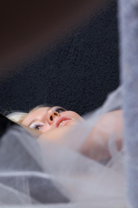 Sexy blonde Alysha A strips to her stockings & presents her big tits & bald cunt