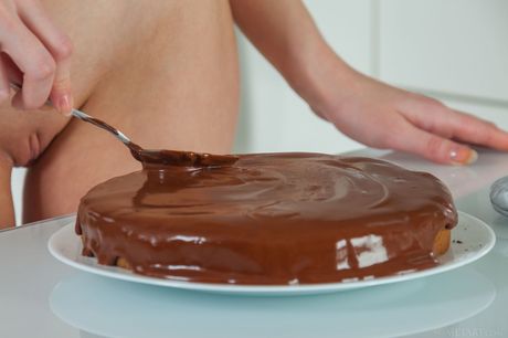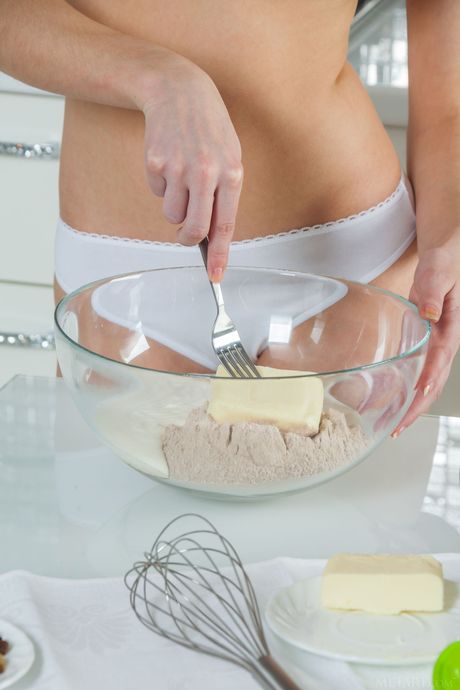 Sexy blonde Charmane removes her bikini to pose nude in the kitchen
