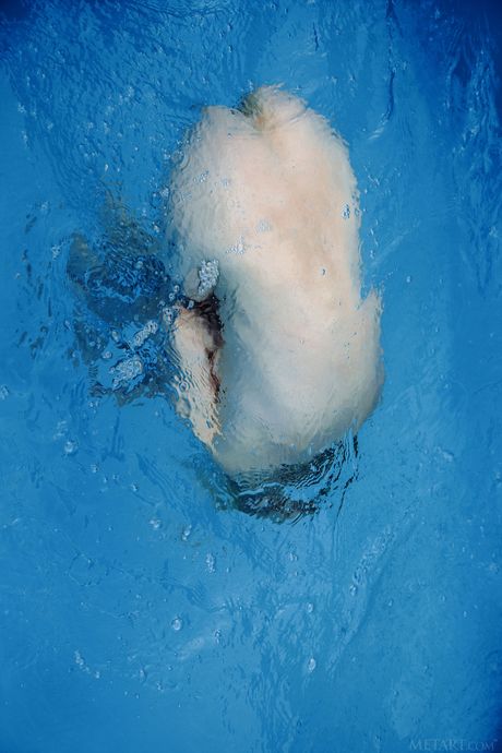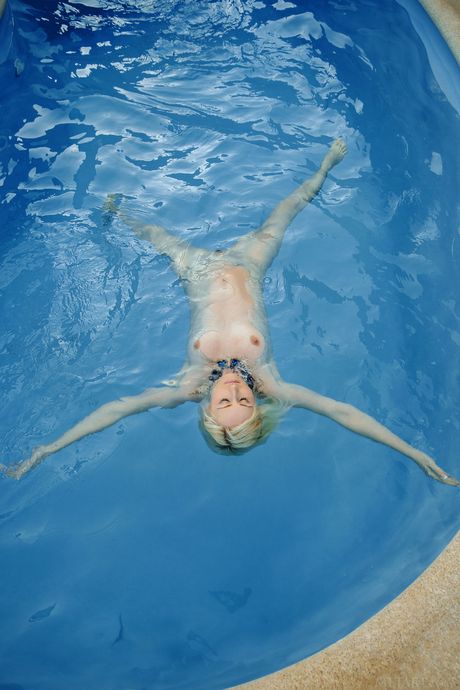 Sexy blonde Janelle B demonstrates her big tits and poses nude in the pool