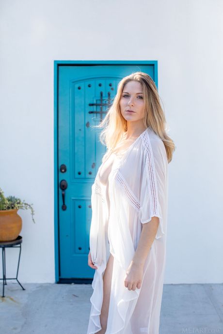 Sexy blonde Kayte gets naked in the backyard and reveals her big tits and hot ass