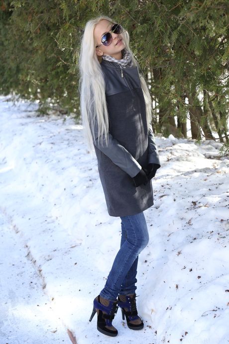 Sexy blonde Leonie in pigtails & boots spreading naked to show bald pussy