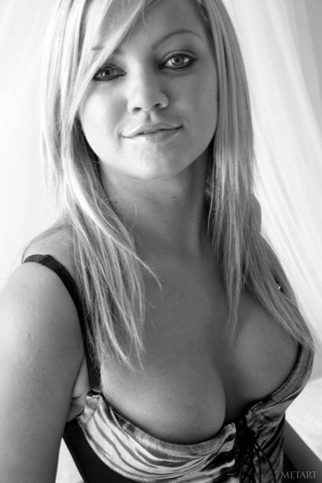 Sexy blonde Maya B removes her lingerie and high heels to pose nude