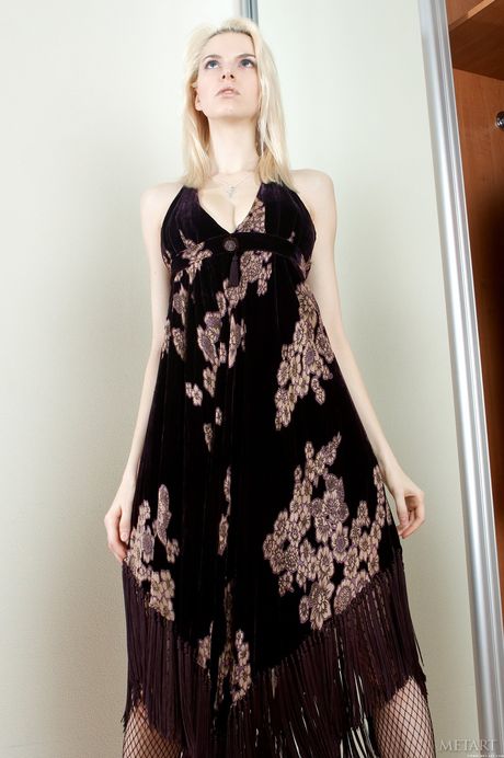 Sexy blonde Maya C gets naked in a pair of black pantyhose
