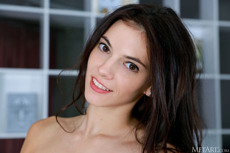 Sexy brunette Aleksandrina shows off her long legs in high heels and a skimpy black