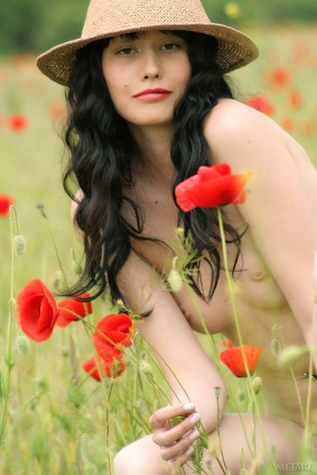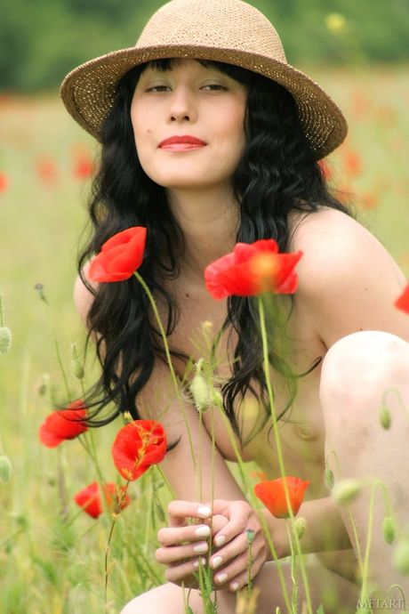 Sexy brunette Anna N in lace lingerie & sheer panties posing naked outdoors
