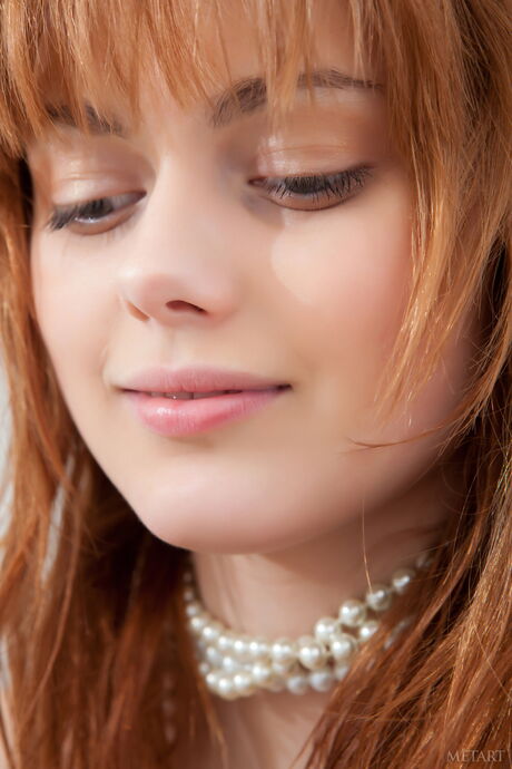 Sexy redhead Amy A shows her tiny tits and poses naked in a solo shoot