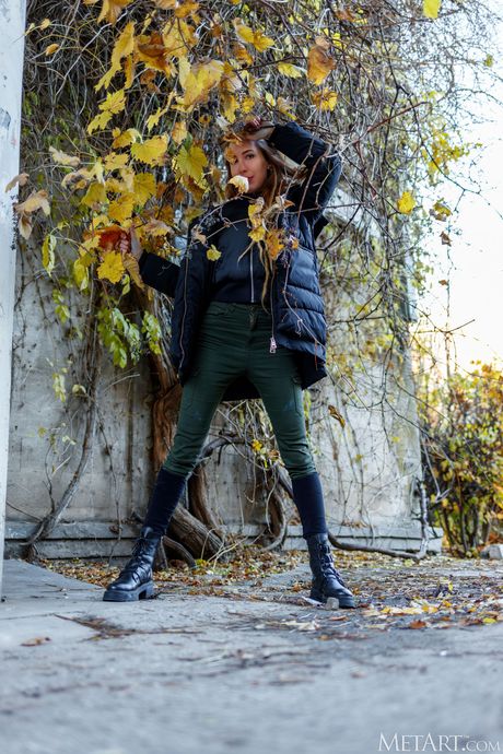 Sexy redhead Madelina leads you indoors on a chilly autumn day