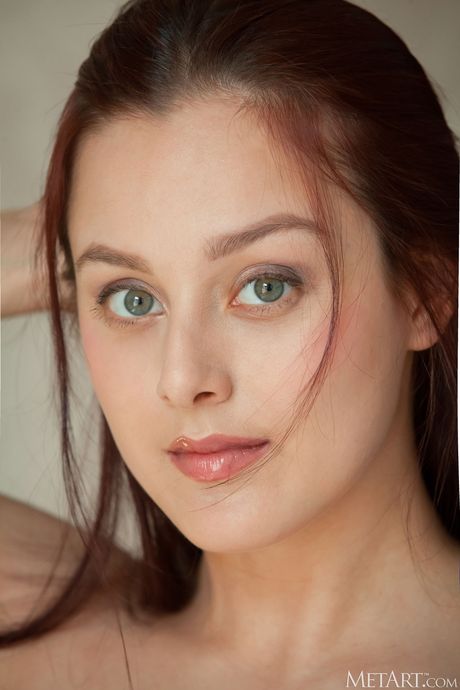 Sexy redhead Olivia Honey removes her panties and shows her shaved pussy