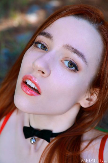Sexy redhead Sherice removes her lingerie and stockings to pose nude