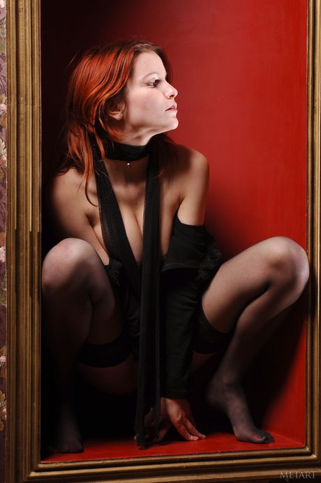 Sexy redhead Ulya I shows her big tits and poses in stockings