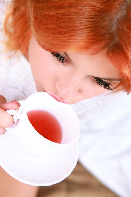 Sexy redhead Violla A removes her bra and panties to pose nude in white socks