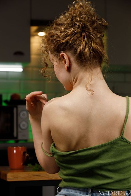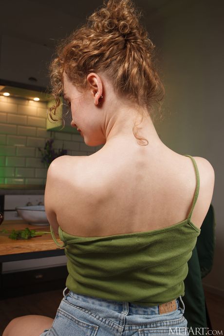 Sexy redheaded teen Felice gets naked in the kitchen while cooking