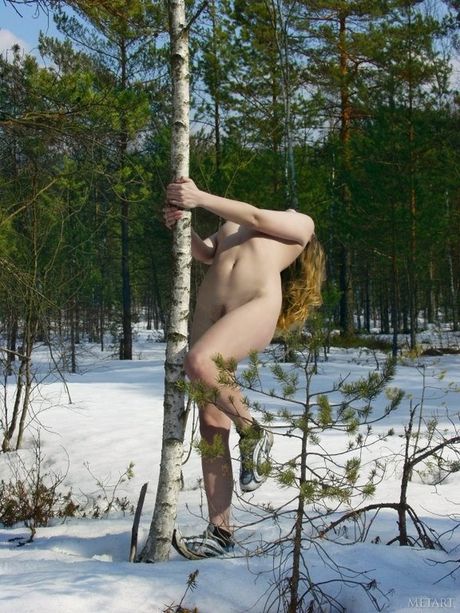 Sexy Russian peach with small tits and hot ass poses naked in the snow