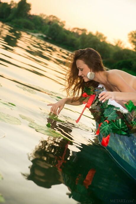 Sexy Shaina A strips on the boat to show her big tits & bald pussy close up